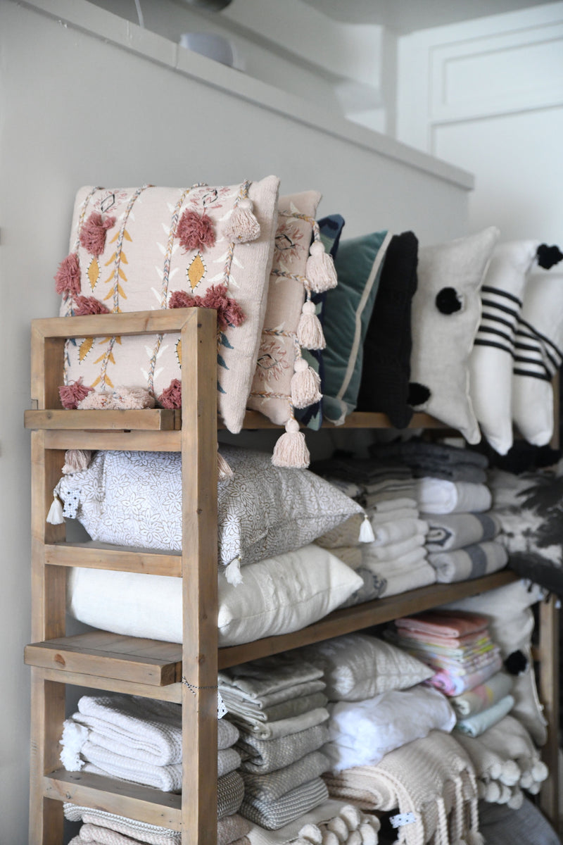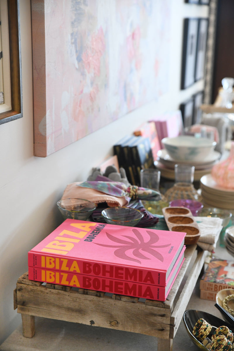 well curated assortment of cookbooks, cocktail books, & fine art filled coffee table books.