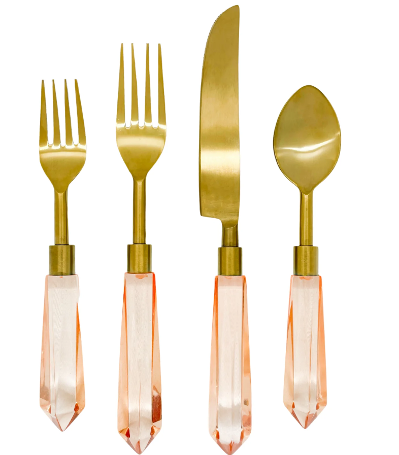 Put the silver away! Create a focal point on your table with this classic gold flatware combined with the modern twist of acrylic detailing. Setting the table is no longer a chore when your fork looks this lovely.