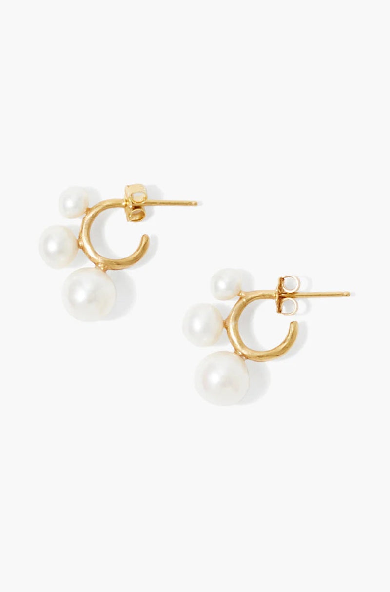 Freshwater pearls on 18K gold plated sterling silver post back hoops. 5/8in. drop, 1/4in. diameter