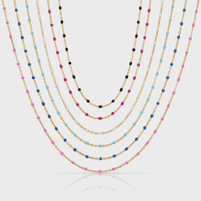 These enamel necklaces are the perfect pop of color and now come in 14k gold filled chain!