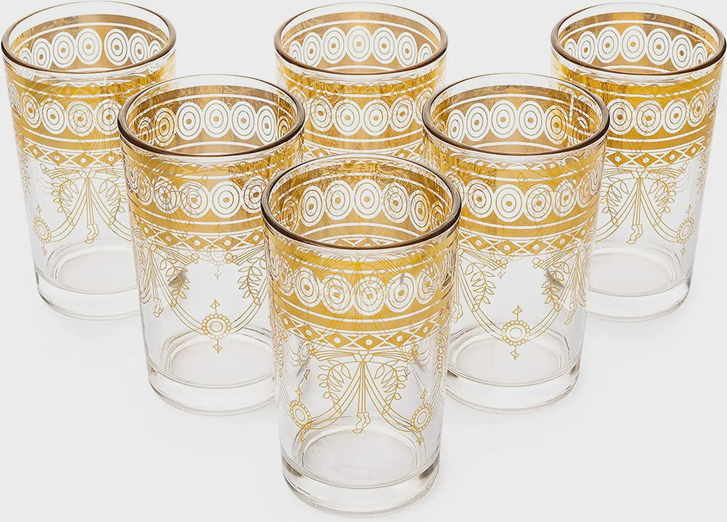 Boldly decorated with Moroccan details, this glass set is ideal for serving mint tea and other cold beverages. Suitable for the dishwasher, this glass set makes a stylish addition to your home.