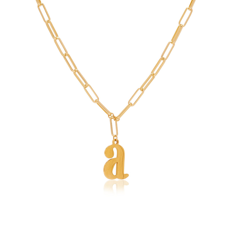 16.75“ with 2” extender. 1“ pendant drop. 14kt gold-plated over brass. Charm available in letters A-Z. Available in Gold only.